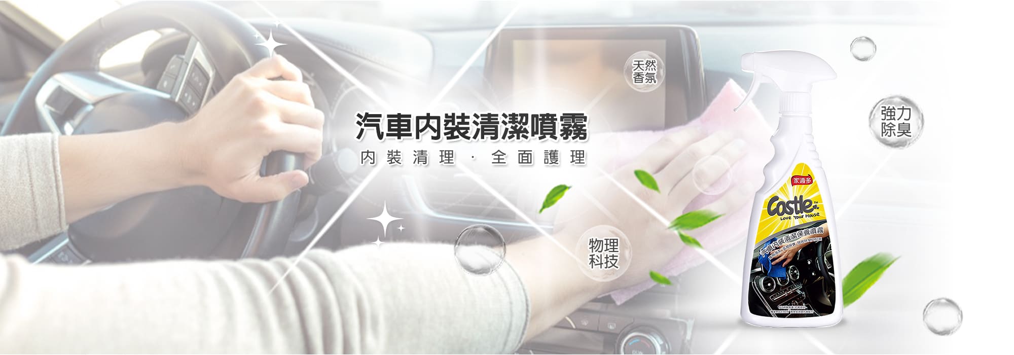汽車內裝清潔保養好幫手,獨家淨速溶垢配方,深層清潔頑垢髒污,